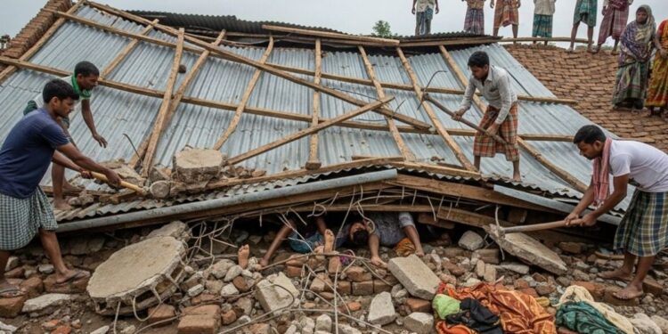 एक कच्चे मकान की छत अचानक गिर गई जिसमें दबकर पांच लोगों की मौत हो गई है। छत गिरने की आवाज सुनकर आसपास के लोग दौड़े तो पाया कि मलबे के अंदर कई लोग दबे हुए हैं।जब इसकी जानकारी प्रशासन को दी गई तब लोग दौड़े दौड़े यहां पहुंचे। उसके बाद मलवा हटाने का काम शुरू हुआ तो पता चला कि छत गिरने से पांच लोगों की मलबे में दबकर मौत हो गई। जिनमें मकान मालिक भी शामिल है। मकान मालिक बबलू खान, उसकी पत्नी रोशन खातून,पुत्र चांद,पुत्री रुखसार और चांदनी। ये सभी घर में सो रहे थे।