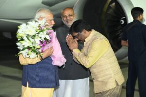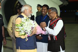 रांची – प्रधानमंत्री नरेंद्र मोदी 14 नवंबर की रात रांची पहुंचे एयरपोर्ट पर उनका स्वागत राज्यपाल सी पी राधाकृष्णन, सीएम हेमंत सोरेन, भाजपा के प्रदेश अध्यक्ष बाबूलाल मरांडी, केंद्रीय मंत्री अर्जुन मुंडा, प्रदेश महामंत्री आदित्य साहू, नेता प्रतिपक्ष अमर कुमार बावरी, आजसू सांसद चंद्र प्रकाश चौधरी, आजसू सुप्रीमो सुदेश महतो प्रमुख रूप से उनका स्वागत किए.