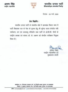 भाजपा विधायक दल के नेता के चुनाव के लिए केंद्रीय पर्यवेक्षक नियुक्त