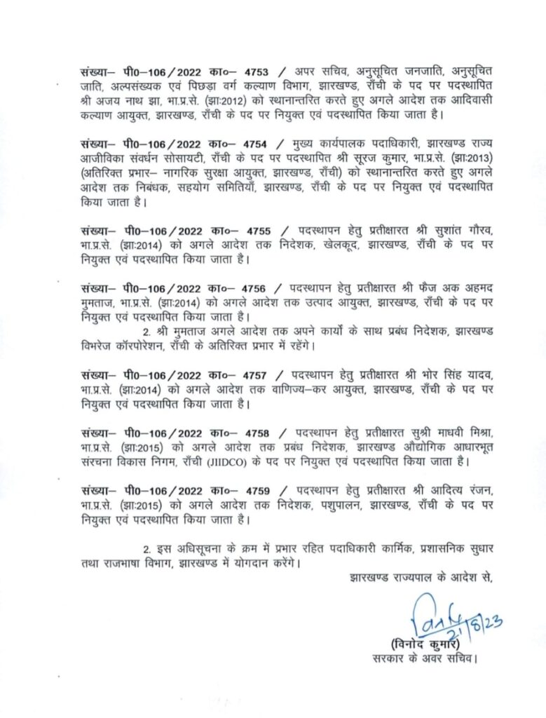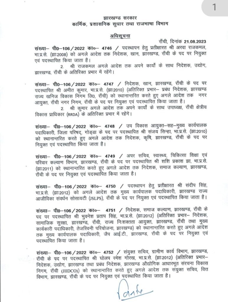 झारखंड में IAS अफसरों का तबादला,अमीत कुमार बने रांची नगर निगम के नगर आयुक्त…