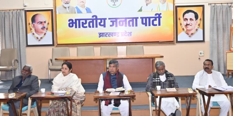 इधर भाजपा प्रदेश कार्यालय में आज प्रदेश अध्यक्ष और सांसद आदित्य साहू की अध्यक्षता में सांगठनिक बैठक हुई जिसमें नेता प्रतिपक्ष बाबूलाल मरांडी, संगठन महामंत्री कर्मवीर सिंह,केंद्रीय मंत्री अन्नपूर्णा देवी, पूर्व मुख्यमंत्री मधु कोड़ा, चंपई सोरेन, प्रदेश उपाध्यक्ष बालमुकुंद सहाय,प्रदेश महामंत्री और सांसद डॉ प्रदीप वर्मा, मनोज कुमार सिंह,पूर्व प्रदेश अध्यक्ष एवम सांसद दीपक प्रकाश, विधायक राज सिन्हा, शशिभूषण मेहता,पूर्व नेता प्रतिपक्ष अमर कुमार बाउरी,पूर्व विधायक अनंत ओझा, बिरंची नारायण,रणधीर सिंह,प्रदेश मंत्री गणेश मिश्र,कार्यालय मंत्री हेमंत दास,अभय सिंह,रणंजय कुमार कुंटु ,सत्यनारायण सिंह,अशोक शर्मा,राजधानी यादव,टुन्नु गोप, शामिल हुए।