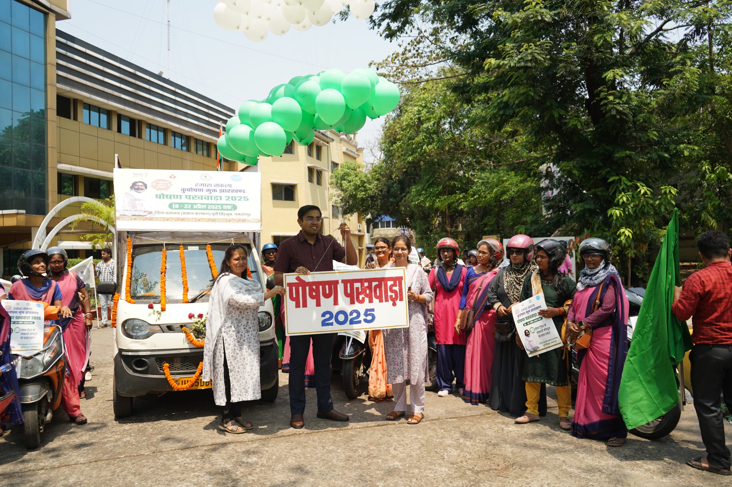 पूर्वी सिंहभूम जिले में 8 अप्रैल से 22 अप्रैल 2025 तक पोषण पखवाड़ा मनाया जा रहा है। इसी क्रम में आज समाहरणालय परिसर से उप विकास आयुक्त श्री अनिकेत सचान एवं धालभूम अनुमंडल पदाधिकारी श्रीमती शताब्दी मजूमदार द्वारा पोषण पखवाड़ा जागरूकता रथ को हरी झंडी दिखाकर रवाना किया गया। इस अवसर पर उपस्थित सभी अधिकारियों व कर्मियों ने पोषण पखवाड़ा की शपथ भी ली।