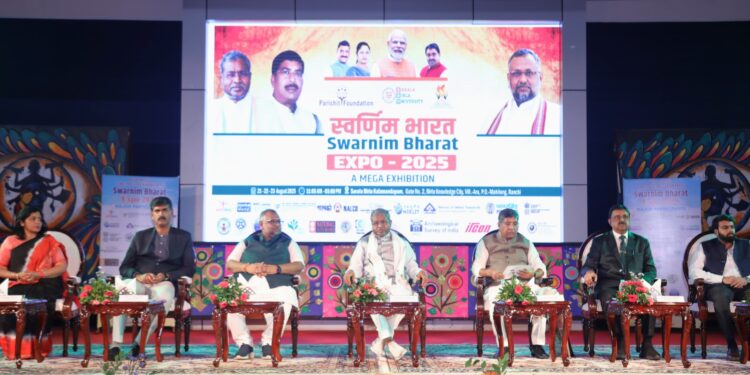 रांची : सरला बिरला विश्वविद्यालय और सरला बिरला पब्लिक स्कूल के संयुक्त तत्वावधान में परिचित फ़ाउंडेशन द्वारा आयोजित स्वर्णिम भारत एक्सपो 2025 का तीसरा और अंतिम दिन भव्य समापन समारोह के साथ सम्पन्न हुआ। सरला बिरला यूनिवर्सिटी के कला मंडपम हॉल में आयोजित इस अवसर पर हजारों युवाओं की उपस्थिति ने आयोजन को ऐतिहासिक बना दिया।