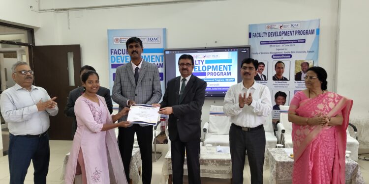 रांची: उच्चतर शिक्षा के क्षेत्र में सरला बिरला विश्वविद्यालय का अपनी एक महत्वपूर्ण पहचान है। यहां कई तरह के प्रयोग शैक्षणिक उत्कृष्टता के लिए आयोजित होते हैं। शिक्षकों में अनुसंधान क्षमताओं और शैक्षणिक उत्कृष्टता को बढ़ावा देने के निमित्त सरला बिरला विश्वविद्यालय के फैकल्टी ऑफ बिज़नेस मैनेजमेंट द्वारा आयोजित पांच दिवसीय फैकल्टी डेवलपमेंट प्रोग्राम — “रिसर्च मेथडोलॉजी एडवांस्ड प्रोग्राम (REMAP 2025) का आज समापन हुआ।