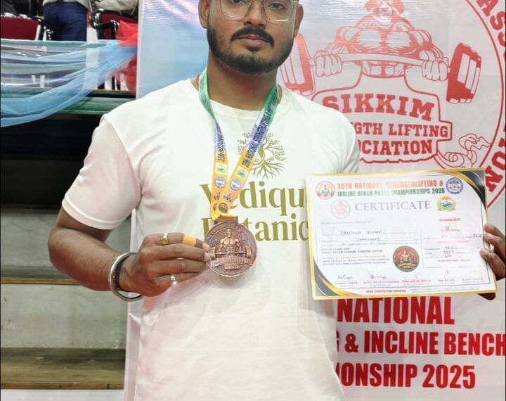 रांची: प्रसिद्ध शिक्षण संस्थान सरला बिरला विश्वविद्यालय के बीबीए पांचवें सेमेस्टर के छात्र प्रत्युष कुमार ने 35वीं राष्ट्रीय स्ट्रेन्थ लिफ्टिंग एवं इंक्लाइन बेंच प्रेस चैंपियनशिप 2025 में उत्कृष्ट प्रदर्शन करते हुए कांस्य पदक (तीसरा स्थान) प्राप्त किया है। यह प्रतियोगिता 11 से 13 नवंबर 2025 तक पालजोर स्टेडियम, गंगटोक, सिक्किम में आयोजित की गई थी। यह झारखंड के लिए भी प्रतिष्ठा की बात है।इस राष्ट्रीय चैंपियनशिप में 25 राज्यों के लगभग 800 खिलाड़ियों ने भाग लिया, जिसमें झारखंड राज्य का प्रतिनिधित्व करते हुए प्रत्युष ने कांस्य पदक हासिल किया।