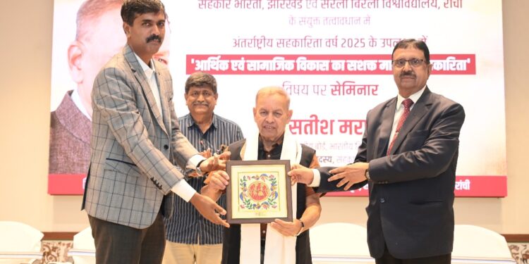 रांची : अंतर्राष्ट्रीय सहकारिता वर्ष के उपलक्ष्य में सहकार भारती, झारखंड एवं सरला बिरला विश्वविद्यालय, रांची के संयुक्त तत्वावधान में आज ‘आर्थिक एवं सामाजिक विकास का सशक्त माध्यम सहकारिता ‘ विषय पर संगोष्ठी का आयोजन किया गया। सरला बिरला विश्वविद्यालय में आयोजित कार्यक्रम के मुख्य अतिथि सहकार भारती के संस्थापक सदस्य एवं भारतीय रिजर्व बैंक के केंद्रीय बोर्ड के निदेशक सतीश मराठे ने सहकारिता के विभिन्न आयामों, इसके कार्यकलापों तथा देश के विकास की राह में इसके योगदान की विस्तार से जानकारी दी। उन्होंने आज के दौर में आठ लाख सहकारी समूहों में से तकरीबन साढ़े लाख समूहों के प्रत्यक्ष आर्थिक गतिविधियों से जुड़ाव की बात कही। विकसित और आत्मनिर्भर भारत को गढ़ने में कोऑपरेटिव सेक्टर की अहम भूमिका तथा तकरीबन 30 करोड़ भारतीयों के इससे जुड़े होने से जीडीपी में इसके योगदान की भी उन्होंने चर्चा की।