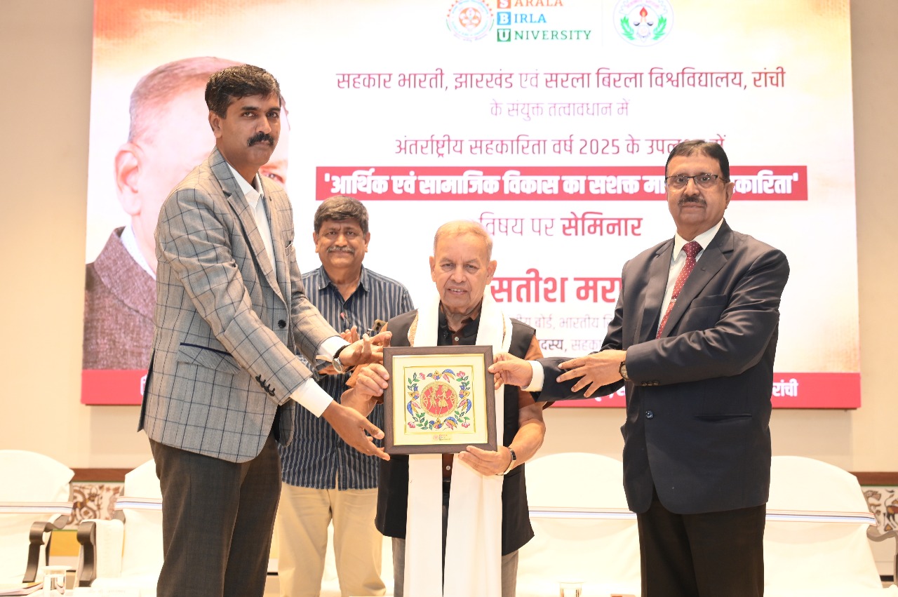रांची : अंतर्राष्ट्रीय सहकारिता वर्ष के उपलक्ष्य में सहकार भारती, झारखंड एवं सरला बिरला विश्वविद्यालय, रांची के संयुक्त तत्वावधान में आज ‘आर्थिक एवं सामाजिक विकास का सशक्त माध्यम सहकारिता ‘ विषय पर संगोष्ठी का आयोजन किया गया। सरला बिरला विश्वविद्यालय में आयोजित कार्यक्रम के मुख्य अतिथि सहकार भारती के संस्थापक सदस्य एवं भारतीय रिजर्व बैंक के केंद्रीय बोर्ड के निदेशक सतीश मराठे ने सहकारिता के विभिन्न आयामों, इसके कार्यकलापों तथा देश के विकास की राह में इसके योगदान की विस्तार से जानकारी दी। उन्होंने आज के दौर में आठ लाख सहकारी समूहों में से तकरीबन साढ़े लाख समूहों के प्रत्यक्ष आर्थिक गतिविधियों से जुड़ाव की बात कही। विकसित और आत्मनिर्भर भारत को गढ़ने में कोऑपरेटिव सेक्टर की अहम भूमिका तथा तकरीबन 30 करोड़ भारतीयों के इससे जुड़े होने से जीडीपी में इसके योगदान की भी उन्होंने चर्चा की।