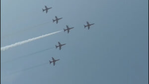 राँची के नीले आसमान में भारतीय वायुसेना की टीम ने अद्भुत हवाई कौशल का प्रदर्शन कर उपस्थित जनता को मंत्रमुग्ध कर दिया। जेट विमानों की कलाबाजियाँ, धुएं से बनी आकृतियाँ और गगनचुंबी गर्जना ने माहौल को देशभक्ति और गर्व की भावना से भर दिया।